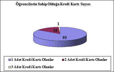 (f)Ankete katılan 110 öğrenciden %84.55’nin sadece 1 tane kredi kartı sahibi olduğu , %14.55’nin 2 tane kredi kartı sahibi olduğu, %0.9 ‘nun ise 3 kredi kartı sahibi olduğu belirlenmiştir.