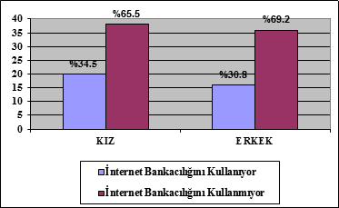 (i)Erkek öğrencilerin%30.8’inin internet bankacılığı kullandığı, kız öğrencilerin ise %34.5’nin internet bankacılığını kullandığı saptanmıştır.